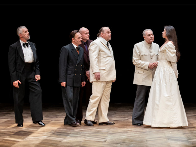 Именно это событие, то есть историю, выводит на первый план в своем спектакле Евгений Марчелли. Среди ярких классических образов в центре на самом деле только двое – ОН и ОНА. Их встреча, их зарождающиеся отношения и, как результат, женитьба, которой НЕ случилось… Почему? Какие мотивы побудили героев совершить поступки, приведшие к известной развязке и финалу? И стал ли поступок жениха таким уж страшным, почти трагическим происшествием для всех окружающих и, самое главное, для невесты? Попробуем вместе разобраться в этом «невероятном событии» в спектакле Евгения Марчелли.